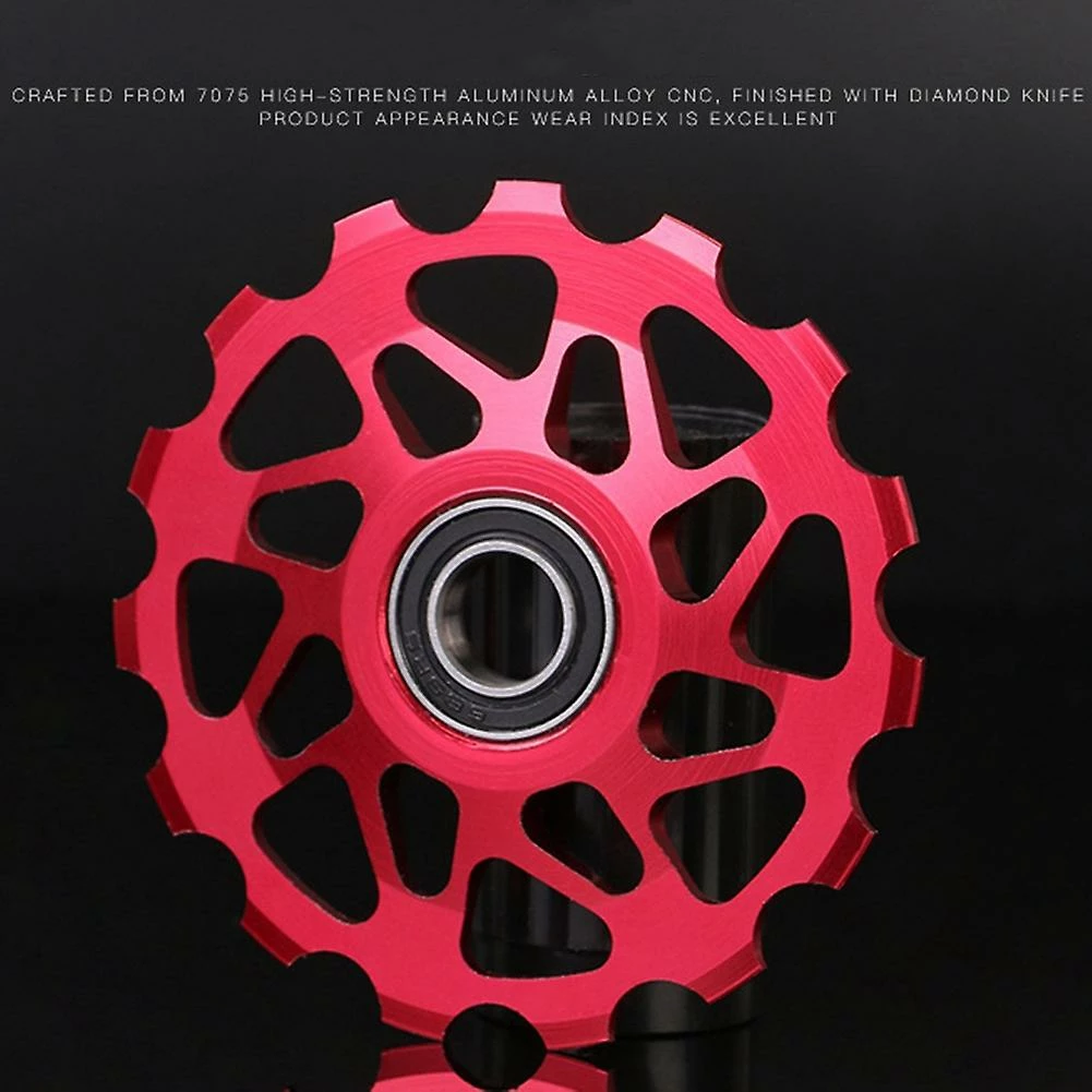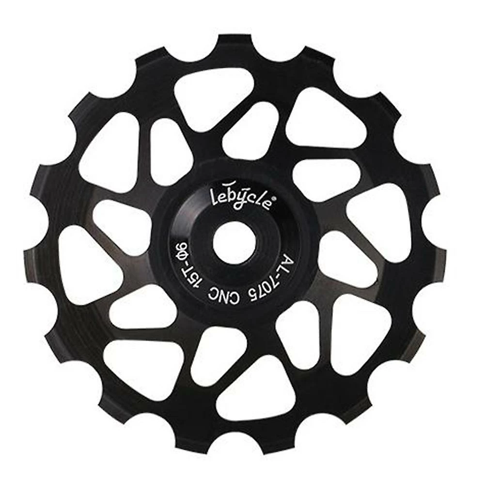 Anodized CNC machined bicycle wheel with sealed bearing for center bolt derailleurs.Stainless steel bearing for ultra durability.Fits for almost all mountain bike of 15T.Specifications:colour: blackMaterial: 7075 aluminum alloy + steelsize: Diameter: 60mmPackage Contents:1 x Rear Derailleur Wheel1 x reducing sleeveOnly the above package content, other products are not included.Note: Light and different displays may cause the color of the item in the picture a little different from the real thing. The measurement allowed error is +/- 1-3cm.