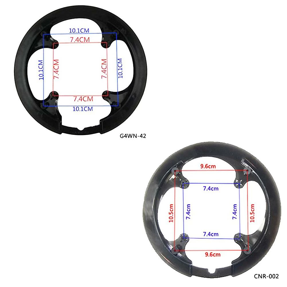 Product name: Bicycle crankset protection coverCompatible with: road bike/mountain bike/folding bikeSpecifications: inner 7.4/outer 9.6mm; inner 7.4/outer 10.1mmWeight: about 40gAdvantages: Made of plastic, light weight, stylish appearance, cool shape, strong compatibilityColour:BlackMaterial:plasticPackage Contents:1 x Bike Chain Protective Cover8 x ScrewsOnly the above package content, other products are not included.Note: Light reflection and different displays may cause the color of the item in the picture a little different from the real thing. The measurement allowed error is +/- 1-3cm.